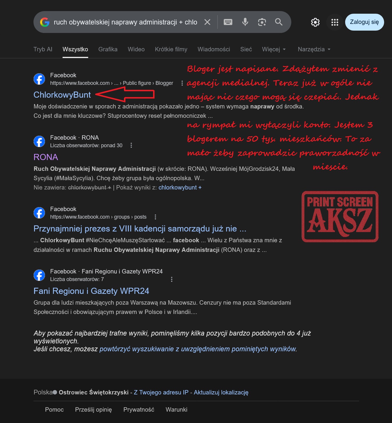 Czyli układanka się kupy trzyma. Tamtą stronę mi usunęli bez ostrzeżenia jako „nieadekwatną działalność”. A ja sądziłem, że Mafia Grodziska to zrobiła przez wynajętych cyberprzestępców. Pomyliłem się?